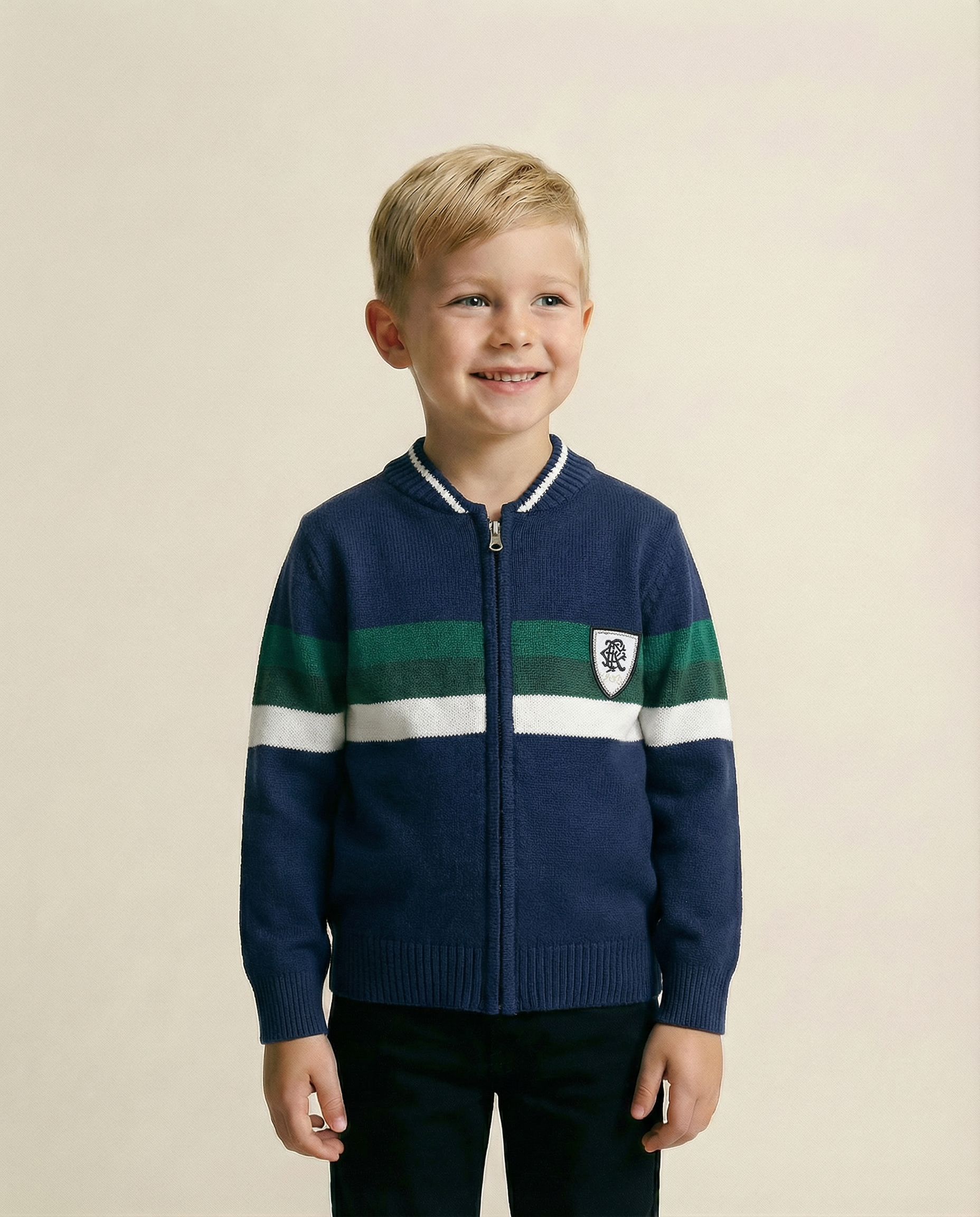 Blijf koel en stijlvol met deze veelzijdige gestreepte trui met rits. Deze speelse trui is gemaakt van 100% katoen en heeft een ronde hals, lange mouwen en een handige ritssluiting in jasstijl. Perfect voor zowel jongens als mannen. Geef de garderobe van je zoon een upgrade met deze coole en speelse trui die niet te simpel en niet te extravagant is.